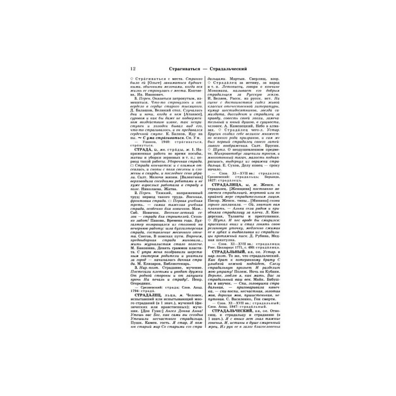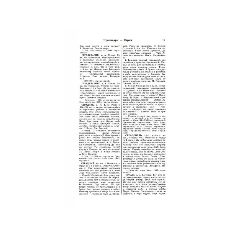 Фундаментальное лексикографическое издание представляет собой самый большой и самый полный толковый словарь (150 000 слов) русского языка. Словарь имеет большое практическое значение как справочник по нормам словоупотребления в современном русском языке. При разработке словарных материалов использовались новейшие научные теории. Особую ценность и уникальность придают Словарю цитатные материалы. Наряду с произведениями русской классики широко представлены тексты писателей нового и новейшего времени. Словарь предназначен для специалистов практически всех областей научного знания, связанных с изучением языка, полезен для преподавателей университетов, включая зарубежных, а также для писателей, журналистов, учителей, студентов, учащихся школ, гимназий, лицеев и всех интересующихся судьбами и состоянием русского языка. Очередной, 28-й, том Словаря содержит слова от "Стравить" до "Сям".