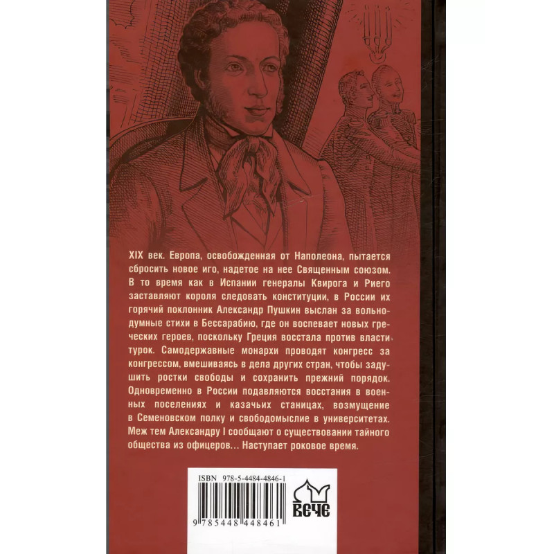 Роковое время. Глаголева Е. XIX век. Европа, освобожденная от Наполеона, пытается сбросить новое иго, надетое на нее Священным союзом. В то время как в Испании генералы Квирога и Риего заставляют короля следовать конституции, в России их горячий поклонник Александр Пушкин выслан за вольнодумные стихи в Бессарабию, где он воспевает новых греческих героев, поскольку Греция восстала против власти турок. Самодержавные монархи проводят конгресс за конгрессом, вмешиваясь в дела других стран, чтобы задушить ростки свободы и сохранить прежний порядок. Одновременно в России подавляются восстания в военных поселениях и казачьих станицах, возмущение в Семеновском полку и свободомыслие в университетах. Меж тем Александру I сообщают о существовании тайного общества из офицеров Наступает роковое время.