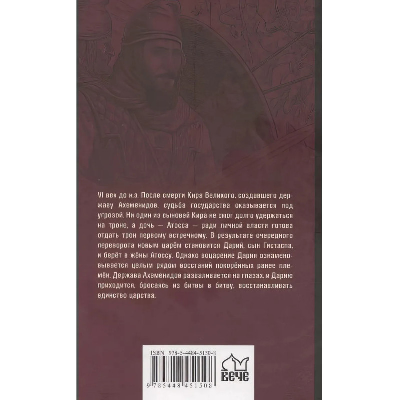 Дарий. Поротников В. П. VI век до н. э. После смерти Кира Великого, создавшего державу Ахеменидов, судьба государства оказывается под угрозой. Ни один из сыновей Кира не смог долго удержаться на троне, а дочь Атосса ради личной власти готова отдать трон первому встречному. В результате очередного переворота новым царём становится Дарий, сын Гистаспа, и берёт в жёны Атоссу. Однако воцарение Дария ознаменовывается целым рядом восстаний покорённых ранее племён. Держава Ахеменидов разваливается на глазах, и Дарию приходится, бросаясь из битвы в битву, восстанавливать единство царства.