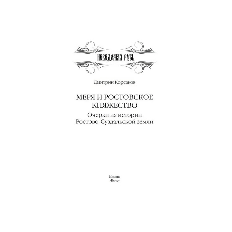 Один из первых в российской исторической науке трудов, посвященных не только истории Ростовского и Владимиро-Суздальского княжеств, но, что не менее важно, древнейшему населению северо-востока Руси, его этногенезу и древнейшему прошлому. Д. А. Корсаков сумел обобщить все доступные ему исторические источники и археологические данные. Он показывал родство мери, мари (черемисов) и мордвы. Книга охватывает период вплоть до XIVXV веков и становления централизованного Московского государства.