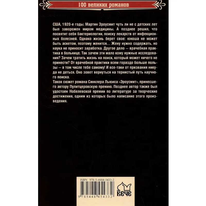 США, 1920-е годы. Мартин Эроусмит чуть ли не с детских лет был заворожен миром медицины. А позднее решил, что посвятит себя бактериологии, поиску лекарств от инфекционных болезней. Однако жизнь берет свое: юноша не может быть аскетом, поэтому женится Жену нужно содержать, но наука не приносит заработка. Другое дело врачебная практика в больнице. Так зачем эти мало кому нужные исследования? Зачем тратить жизнь на поиск, который может ничего не принести? От врачебной практики всем гораздо больше пользы в том числе тебе самому! И все-таки от призвания никуда не деться. Оно зовет вернуться на тернистый путь научного поиска. Таков сюжет романа Синклера Льюиса Эроусмит, принесшего автору Пулитцеровскую премию. Позднее автор также был удостоен Нобелевской премии по литературе за творческие достижения, одним из которых было написание этого произведения.