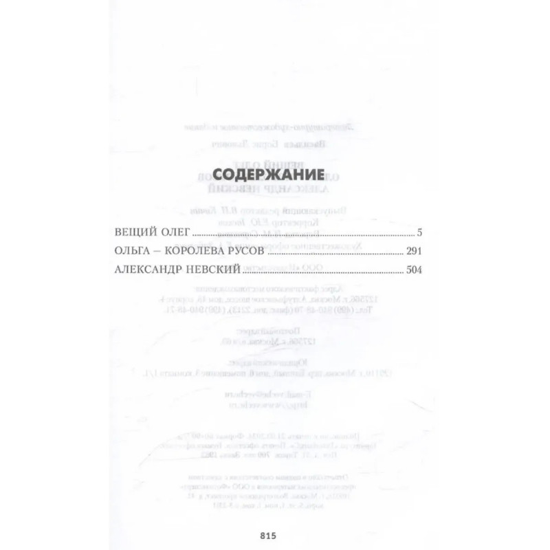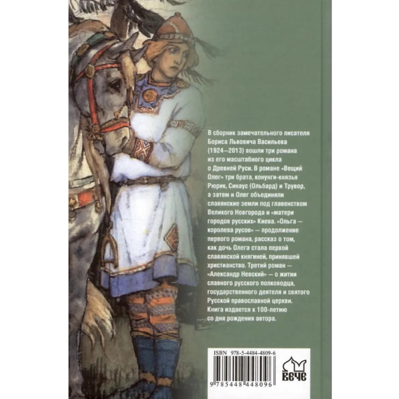 В сборник замечательного писателя Бориса Львовича Васильева (19242013) вошли три романа из его масштабного цикла о Древней Руси. В романе Вещий Олег три брата, конунги-князья Рюрик, Синаус (Ольбард) и Трувор, а затем и Олег объединяли славянские земли под главенством Великого Новгорода и матери городов русских Киева. Ольга королева русов продолжение первого романа, рассказ о том, как дочь Олега стала первой славянской княгиней, принявшей христианство. Третий роман Александр Невский о житии славного русского полководца, государственного деятеля и святого Русской православной церкви. Книга издается к 100-летию со дня рождения автора.