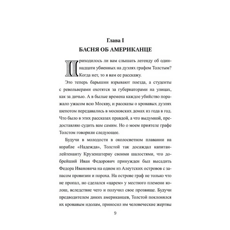 1808 год. Молодому дворянину Федору Толстому исполнилось 26 лет. Однако он считает себя стариком и полагает, что его жизнь кончена. По счастью, именно в это время начинается последняя Русско-шведская война, в которой Толстой решает участвовать. Такова завязка истории известного авантюриста, картежника и дуэлянта, который, как гласит легенда, убил в ходе дуэлей одиннадцать человек и понес за это страшное наказание от судьбы она послала смерть одиннадцати его детям. Этот роман Олега Хафизова раскрывает с новой стороны личность Федора Толстого и является продолжением романа Дикий американец, ранее опубликованного в этой же серии.