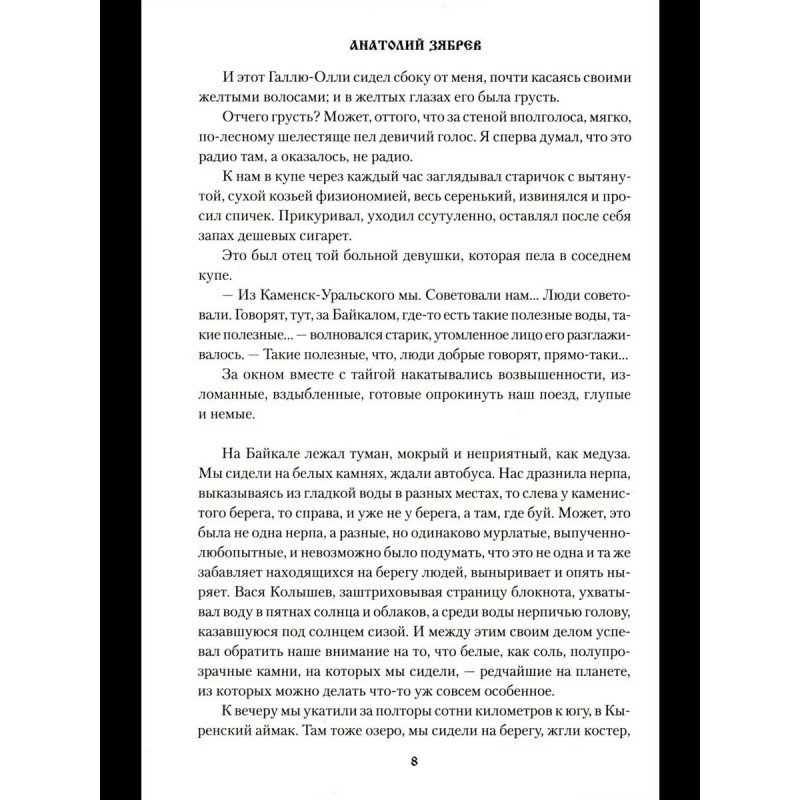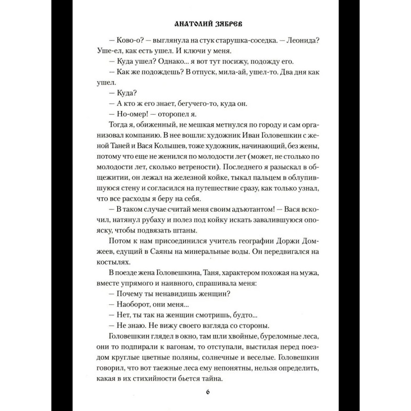 Зябрев А. Е. Дорога в легенду: повести, рассказыСборник повестей и рассказов красноярского писателя Анатолия Ефимовича Зябрева (19262021) посвящен труженикам городов и сел, простым людям, в чьей жизни случаются и великие, и смешные, и рядовые, и порой героические события. К столетию со дня рождения писателя.